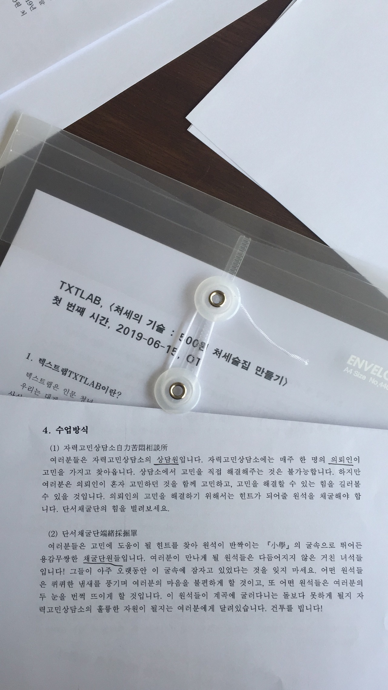 | [TXTLAB] S2 <처세의 기술>_둘째 날 후기 (0) | 2019.06.28 |