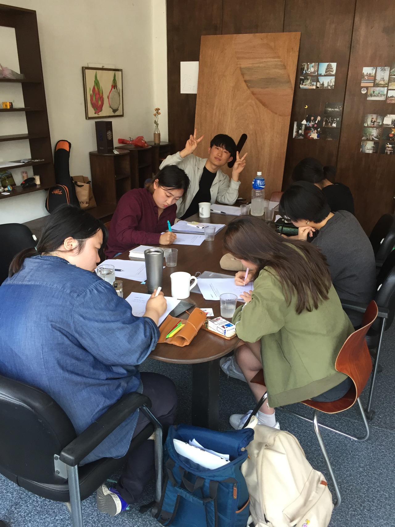 그제 막 온 따끈따끈한 스피커에서 재즈 풍의 음악이 흘러나오고 현관문으로 바람도 들어오고 목공소에서 목공하시는 소리도 들으며 부드러운 분위기 속에서 수업이 시작 됐습니다. 첫 시간이었고 초면인 친구들이 있었는데도 즐거운 수업이었습니다.