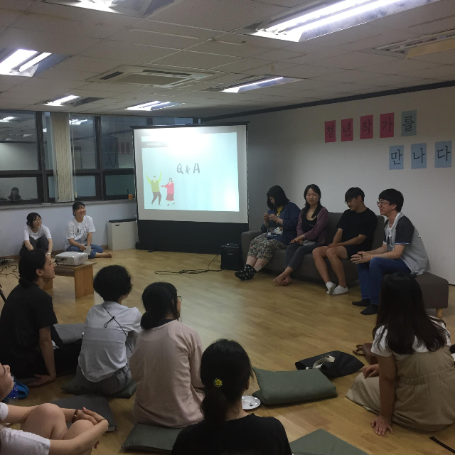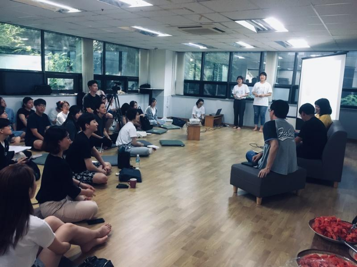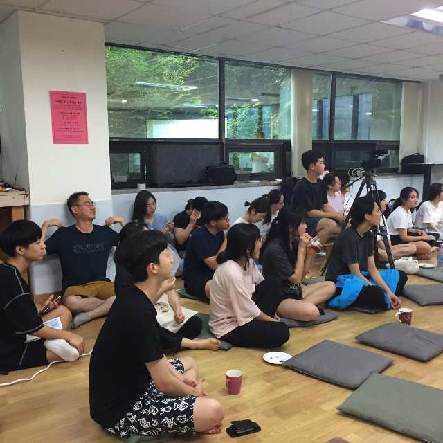 질의응답 시간엔 고은누나도 합세했죠! 강의를 잘 들어주신듯한 질문들 덕에 대답도 스무스하게 흘러갔구요~ 가장 어려운 질문을 해주신 분을 뽑아 선물을 드리고 방석을 이용한 즉석 당첨 이벤트 등으로 즐거운 분위기가 이어졌어요~