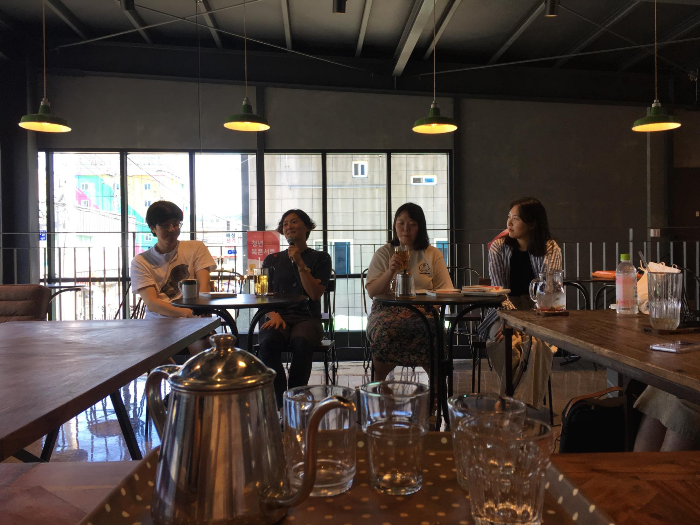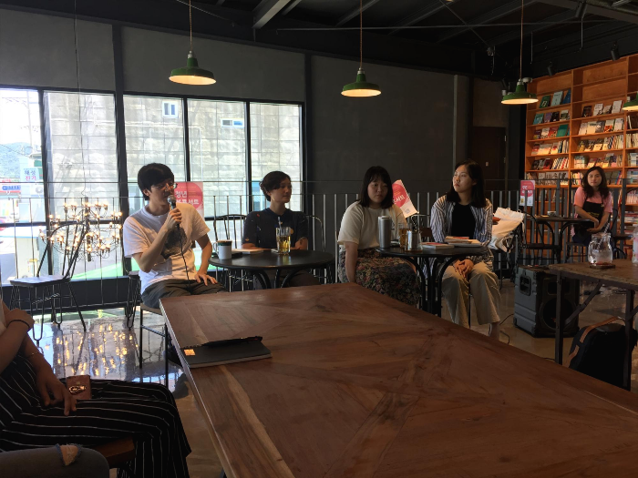 저자분들에겐 대부분 아는 분들이었지만ㅎㅎ 편한 분위기에서 인사를 나누고 이야기를 나누는 건 즐겁지 않을 수가 없지요. 빛나샘의 책을 편집 및 출판해주시고, 디자인 회사를 운영하시면서 가출 청소년들과 밥차를 운영하신다는 분이 기억에 남습니다. 가출 청소년들에게 고민이 있듯이 청년들에게도, 누구나 큰 고민거리들을 가진다는 것. 그걸 해쳐나가는 모습을 응원한다는 마음이 멋있으셨습니다.