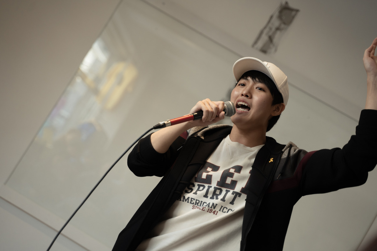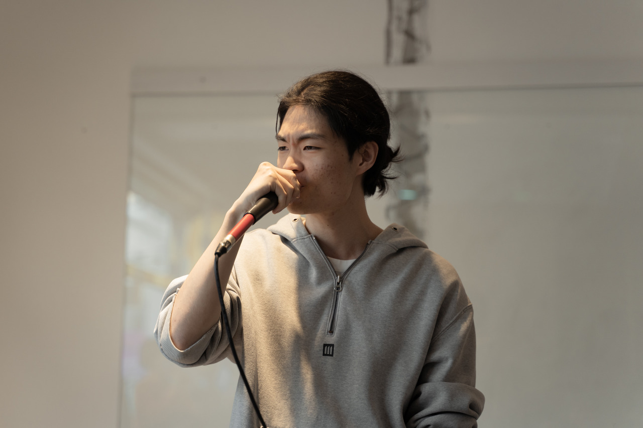 두 번째 순서는 MC 부스러기! 석우였습니다. 힘든 대학생활과 청년들의 고민을 담은 곡 [Survive]! 어두운 가사가 될 수도 있었지만 오히려 경쾌하고 신나는 비트 위에서 '함께 살아남자!'고 격려해주는 곡이었습니다. 석우의 일상적이지만 깊은 고민들을 엿볼 수 있었구요, 자칫 뻔한 곡이 될 수도 있었지만 신나는 비트를 선택한 게 신의 한수였습니다. 재밌게, 몰입도 있게 잘 전달된 것 같아 아주 만족스러웠어요. 무엇보다 석우는 힙합이나 랩을 거의 들어본 적 없다고 해요. 그랬던 친구가 랩 가사를 쓰는 것에 재미를 느끼고 열심히 연습해서 실수없이 무대를 잘 마쳤다는 게 너무 멋있었습니다. 제가 수업때 강조했던 가사 속 내용과 기술의 밸런스도 아주 좋았어요!
