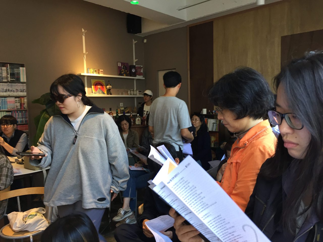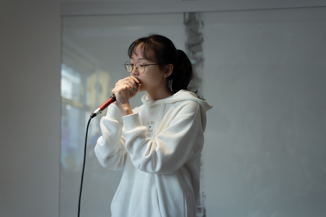 공연에 대한 간단한 개요와 가사 리플렛에 대한 설명을 해드리고 저의 오프닝 공연으로 출발을 했지요! 저는 평소에 잘 부르지 않던 두곡을 준비했어요. 아무래도 오프닝이다보니 힘찬 분위기여야할 것 같았는데 최근엔 잔잔한 곡들만 만들어서ㅎㅎ.. 중학교 동창 친구가 만들어준 비트에 자유롭게 썼던 [Mic check freestyle]과 김왈리의 [Break time!] 으로 오프닝을 장식했답니다!
