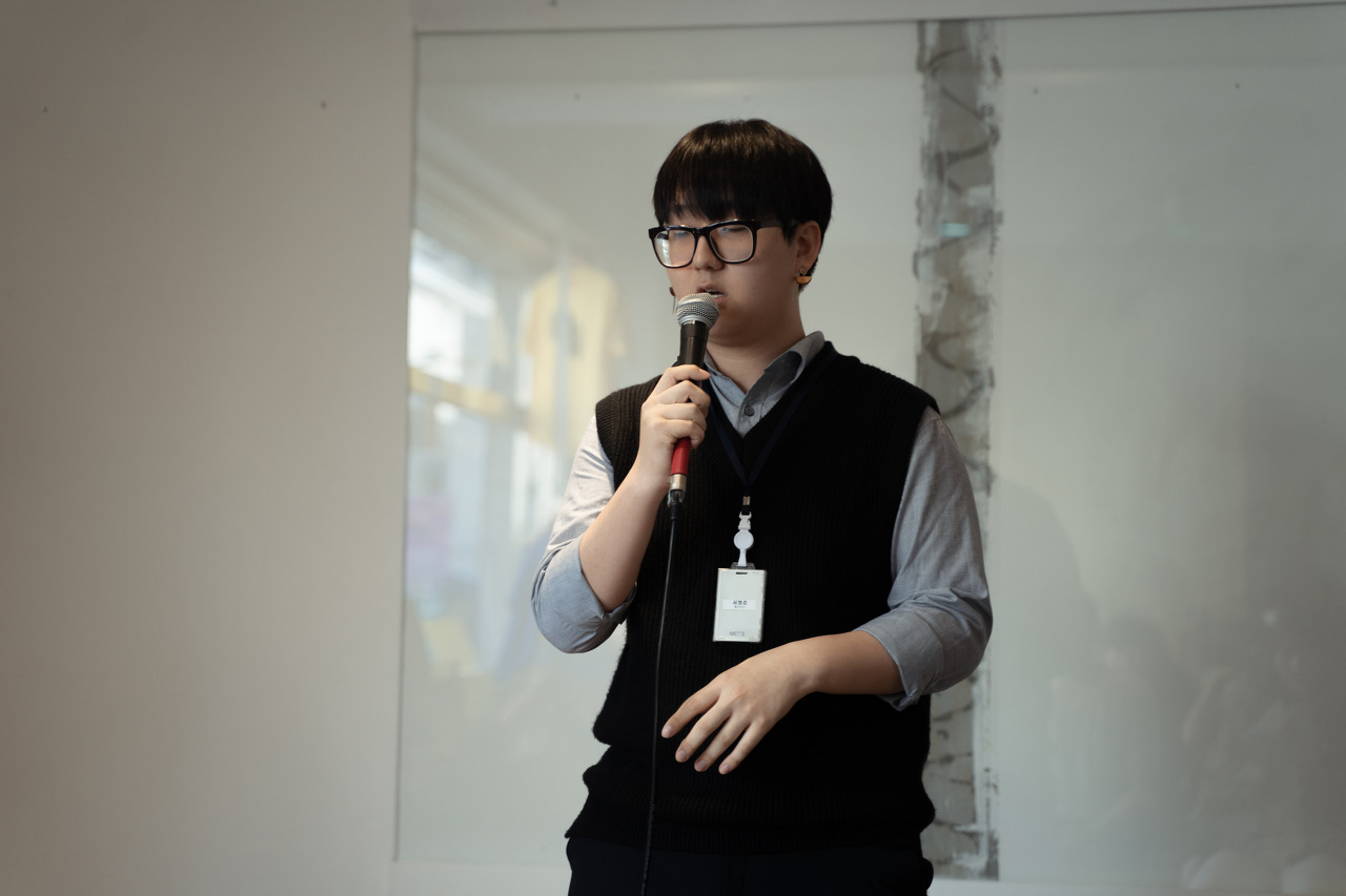 새은이는 [수요하게], [목요하게]라는 제목으로 두곡을 준비해주었습니다! 가장 수업을 잘 따라오던 모범생이었죠. 그런 만큼 두곡씩이나 준비해서 멋지게 공연할 수 있었습니다. 귀엽고 통통 튀는 분위기로 자신의 휴일을 노래한 [수요하게]와 정반대로 진지하게 힘들기도 하지만 잘 살아나가는 자신을 노래한 [목요하게]. 두 곡의 반전되는 분위기가 새은이의 매력을 잘 보여준 것 같습니다. 해은이와 함께 새은이 역시 악어떼 때 부터 저의 랩수업을 들어서 아주 탄탄한 기본기와 멋진 가사들로 무대를 장악했습니다. [목요하게]에서는 보컬적 재능까지 보여주어 풍성함을 더했지요!