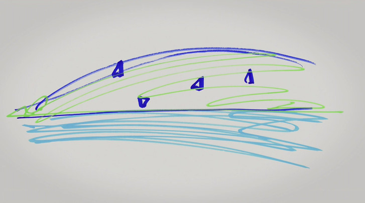 ①안도 타다오-미도리: 안도 타다오라는 일본의 유명한 건축가가 있다. 그가 등장하는 다큐멘터리 영화 <안도 타다오>에서 그는 식물을 ‘미도리(초록색)’라고 부른다. “미도리, 미도리, 미도리…, 미도리가 있으니까 좋잖아?” 나는 이것이 그가 어떻게 건축에 자연을 끌어들이는지를 보여주는 재밌고 중요한 장면이라고 생각했다. 그는 자연을 건축에 포함되거나 부가적인 요소로 축소하지 않고, 개별 개체들로 보지도 않으며 일종의 흐름으로 본다. 곧 이어 그의 스케치에 표현되는 ‘미도리’ 또한 교차되는 선들일 뿐 구체적인 개체의 모양이 아니다. 이것이야말로 아이들의 그림 같다. 이런 안도 타다오의 언어와 스케치는 ‘식물’ 혹은 ‘초록색’의 정해진 경계를 허물며 생성한다. 동시에 그러한 과정과 분리될 수 없는 새로운 건축물이 만들어진다. 물론 그의 건축사무소 직원들은 이런 그의 아이디어를 현실화하기 위하여 그야말로 ‘개고생’을 하기는 한다.