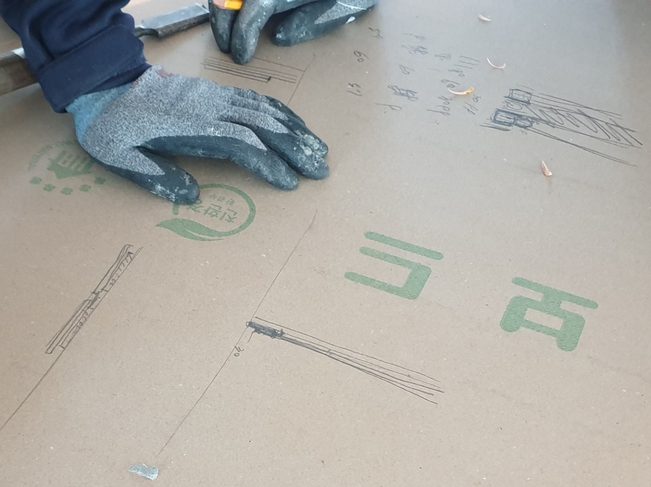 ②이청호 소장-자투리 나무에 그려진 도면: 이청호 소장은 인테리어 목수인데, 대학을 나오지도, 건축을 공부하지도 않았다. 당연히 자격증도 없다. 그에게 내가 가져다주는 건축 도면은 별 효과가 없다. 다만 전체적인 느낌을 알기 위한 하나의 요소일 뿐이며, 부분 부분의 디테일들은 자신이 직접 현장에 떨어진 자투리 나무 위에 그려 나에게 확인 받는다. 나는 확정적이던 나의 도면을 그가 그의 언어로, 그의 그림으로 서툴게 표현하는 모습을 보며 자주 새로운 생각을 얻어 방향을 틀었다.
