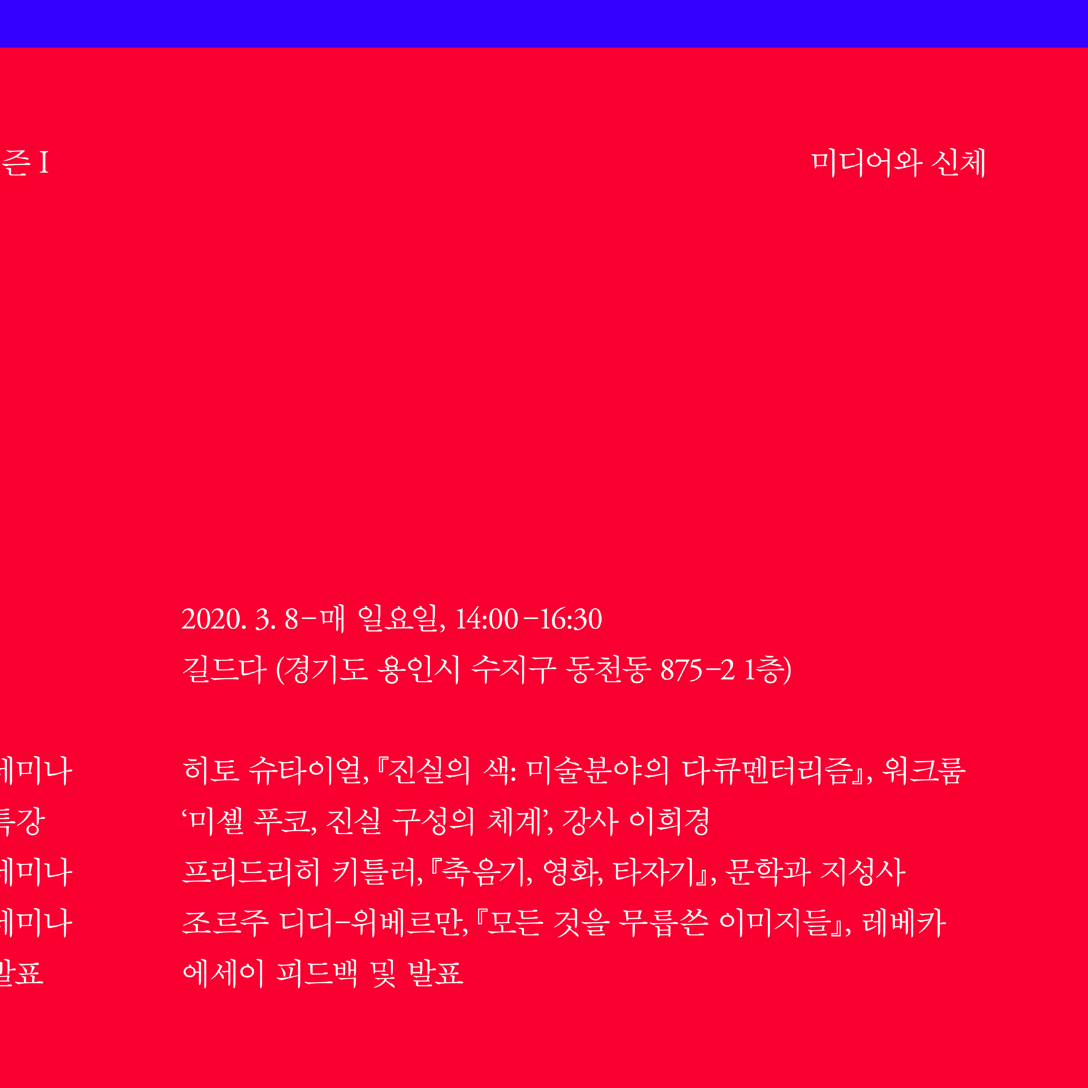 <2020 길드다 강학원 시즌1– 미디어와 신체> 모집 (3/22개강)