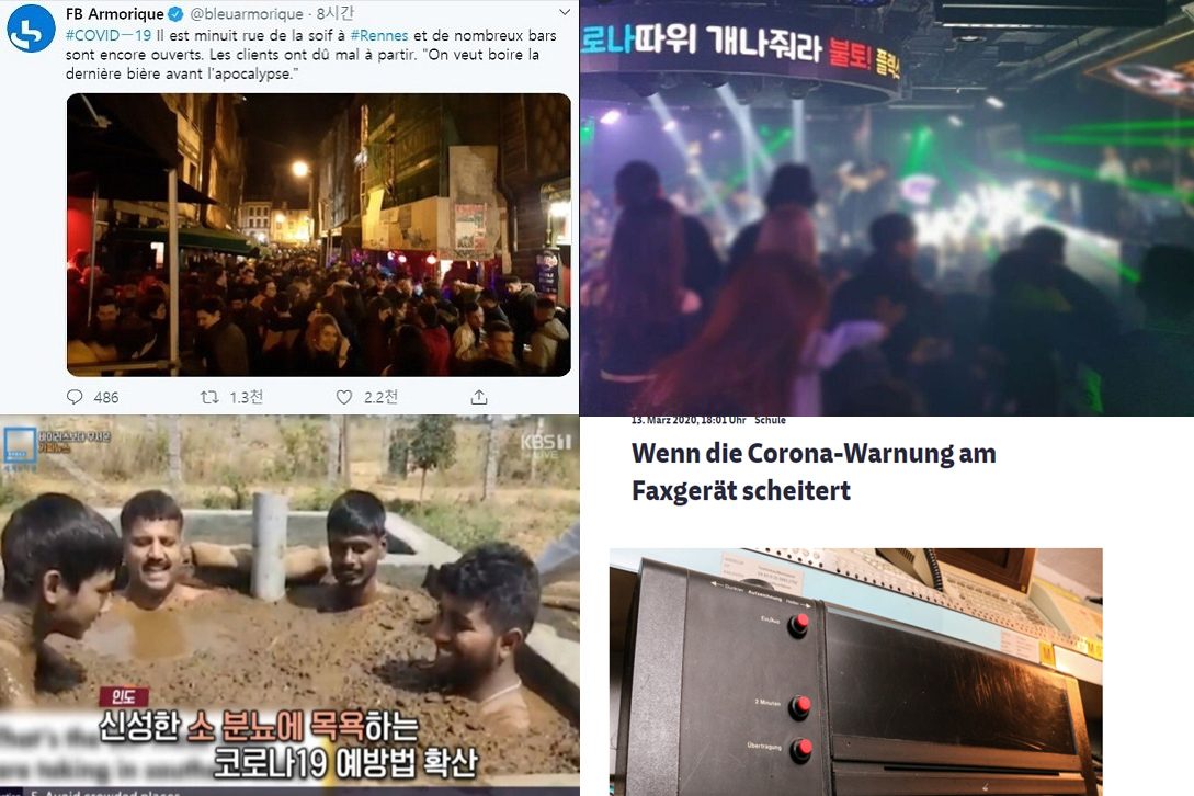 ▲좌측 상단부터 시계방향으로, 술집 폐쇄 전날 파리 거리의 파티 / 한국의 클럽 /