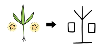 그 중에서도 저자가 본문에서 가장 아름다운 형성자로 언급한 한자 하나를 소개한다. 바로 星(별 성)자다. 星은 반짝이는 별을 의미하는 日(날 일)자와 소리의 부분인 生(날 생)자가 합쳐진 문자다. 日은 형태적으로 그 이전부터 반짝임을 나타내는 기호에 해당한다. 그가 星을 탁월하다고 느끼는 이유는 바로 生 때문이다. 生은 본래 초목의 새싹이 싹트는 생명력을 나타낸 글자다. 生은 그저 소리의 기호이지만 한자의 형상에 있어 그 풍경을 상상할 수 있는 동적인 요소를 갖고 있다. 星의 갑골문은 하늘에 떠 있는 반짝임을 나타내는 日과 그 아래 풀잎을 표현하는 生의 조합으로, 우리에게 마치 풀잎 위 이슬에 비친 별들의 반짝임이 담긴 아름다운 문자로 다가온다.