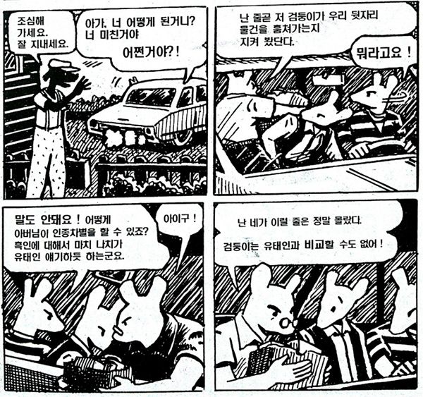 만일 상상하기를 포기한다면, 그리하여 어떤 존재를 감히 말로 표현할 수도, 상상할 수 없는 것으로 - 신, 신성한 번제물, ‘홀로코스트’ - 만들어낸다면 어떤 일이 일어나는가. 그것은 우리로부터 영영 멀어져 실종되어버리고 말 것입니다. 저는 이것에 대해 이야기하면서, 세상의 다른 잔혹한 학살들과 쇼어를 비교하는 걸 거부하는(“감히 그것을 쇼어에 비교하다니!”) 몇몇 시온주의자들의 이야기를 떠올렸습니다. 감히 말해질 수 없는 것. 그럼으로써 그들은 쇼어의 기억과 지금 이스라엘이 팔레스타인 사이에서 벌어지는 일들을 비교하길 거부합니다. 또한 저는 아우슈비츠 생존자의 기억을 다룬 만화 『쥐』에서 주인공 블라덱 슈피겔만이, 역사상 가장 잔혹하다 말해지는 인종청소에서 살아남은 그 주인공이 아무렇지도 않게 흑인을 멸시하던 장면을 떠올립니다. 어떻게 그러실 수 있냐고 분노하는 며느리에게 그도 말했죠. 흑인은 유태인에 비교될 수 없다고.