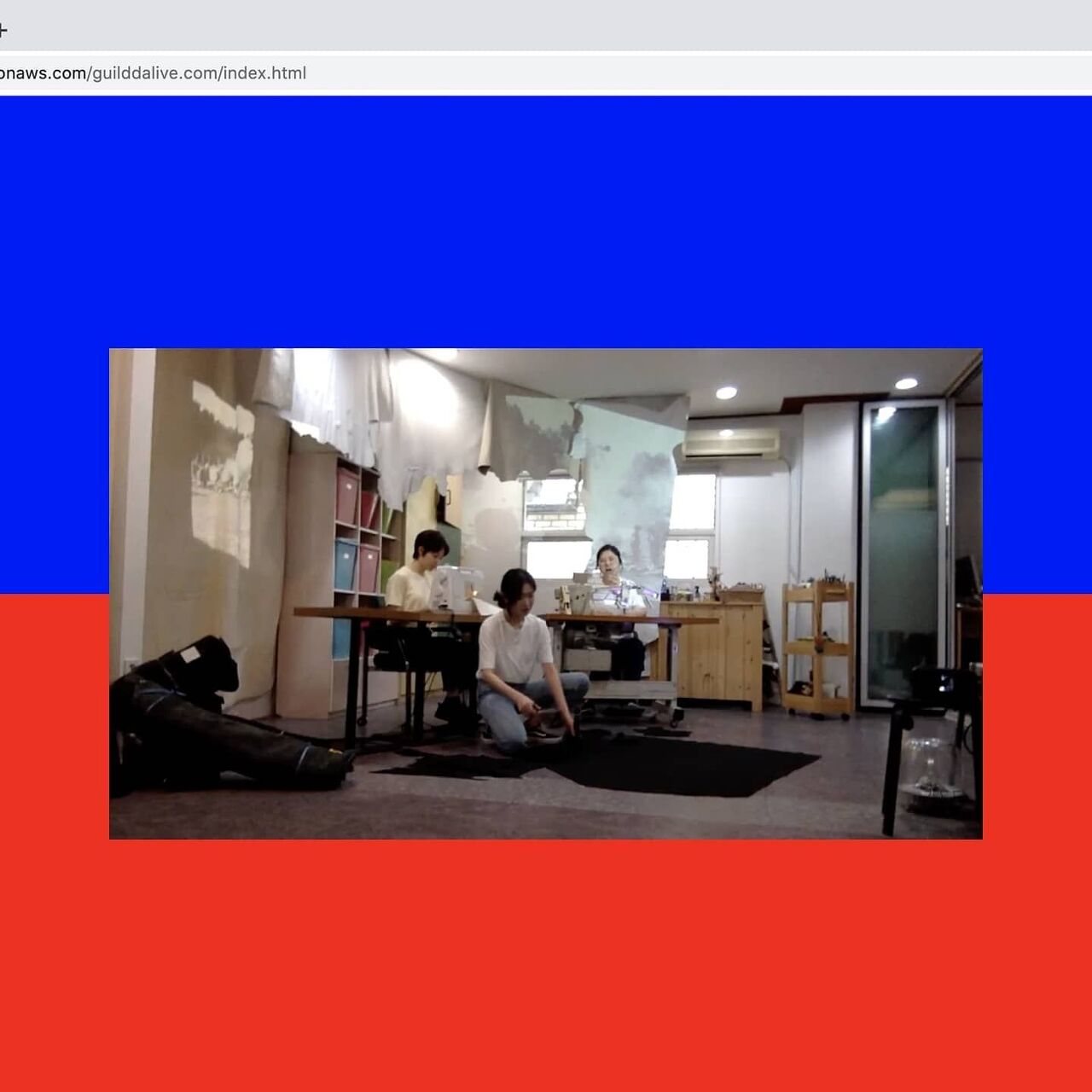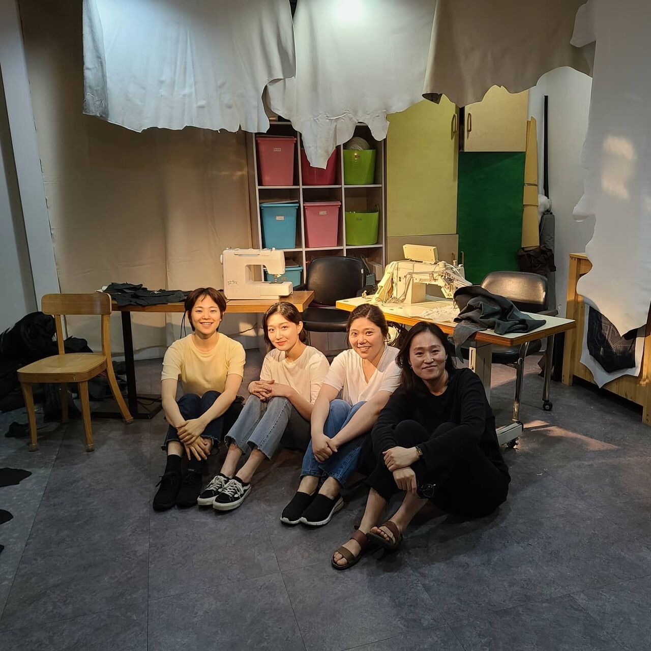 규혜는 아마도 이 구성을 차용해 『모든 것을 무릅쓴 이미지들』에서 다루고 있는 쇼아를 현재의 시공간과 결합해 다르게 느끼고 해석할 수 있도록 연극을 구성한 듯합니다. 길쌈방을 무대로 뒤편에는 흰 가죽에 쇼아로부터 나온 4장의 사진이 프로젝션으로 돌아가고, 그 앞에는 실제로 길쌈방에서 사용되는 재봉틀이 돌아갑니다. 배우들은 재봉틀에 앉아 일을 하며 질문을 던지고 추측합니다. 그들이 만들고 있는 것은 무엇인지, 이 물건들은 어디로 가는지, 가기는 하는 것인지. 자신들은 무엇을 하고 있는 것인지. 그들이 무심하게 던지는 유일하지만 모호한 대답은 “살아”, 그리고 “살아남아”입니다. 살기 위해서, 혹은 살아남기 위해서. 그러나 끝내 산다는 것, 살아남는다는 것이 무엇인지, 그리고 그들이 만들던 것은 무엇이었는지, 그리고 왜 한 사람씩 사라지는지 답변되지 못한 채 연극은 끝납니다.