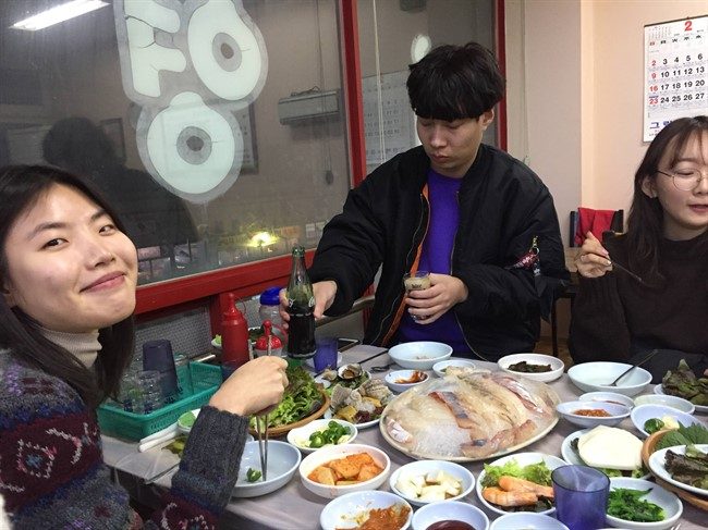 해가 어둑어둑 질 때 즈음 자리를 이동해 근처 수산시장으로 향했습니다. 형섭은 횟감의 가격을 얼추 알고 있었고, 딜하는 방법도 엄청 잘 알고 있었습니다. 형섭 덕분에 싸게 싱싱한 회를 잔뜩 먹을 수 있었습니다. 그러나 그 식탁에서 가장 인기가 많았던 음식은 회나 스키다시가 아닌 '떡'이었답니다.