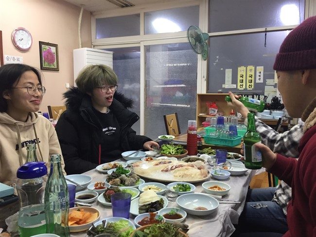 소윤님은 인겸님이 말할 때마다 웃음을 멈추지 않았는데요, 아무리봐도 20대의 말투가 아닌 것 같다고 웃음을 참지 못했습니다. 입시가 끝나고 술의 맛을 깨달은 소희님과 문탁에서도 술꾼으로(??) 정평이 나있는 제윤, 그리고 술이 들어갈수록 구수한 말투를 구사하는 인겸님은 시원하게 술 한 잔 걸쳤습니다. 그러나 술을 먹지 않고도 할말은 다 하는 초빈이와 술을 별로 좋아하지 않는 지원, 소윤 그리고 운전해야하서 술을 못 마시는 저와 형섭도 화기애애한 분위기를 놓치지 않았답니다.