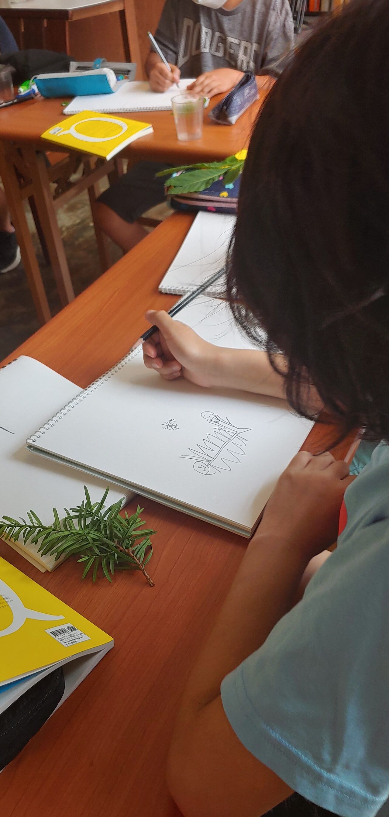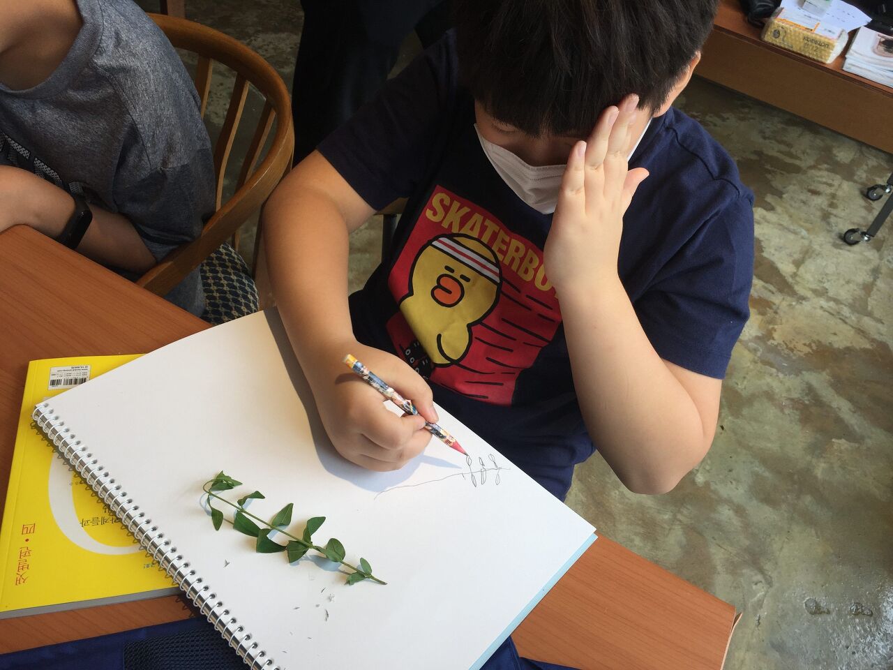 그래서! 우리도 이번 시간에 주변에 있는 나무들을 이파리로 구분해 한자로 만들어보는 시간을 가졌습니다.