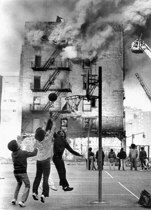 맨하튼 북부에 위치한 할렘과 그 바로 위에 있는 브롱스는 뉴욕을 대표하는 슬럼가였고, 특히 인종차별에 고통 받던 흑인들이 모여 살던 지역이었다. 세계2차대전 이후로는 더 많은 빈민들이 모여들었다. 하지만 이 시기는 뉴욕의 ‘도시 재개발 열풍’이 불던 시기이기도 하다. 뉴욕시의 관료와 은행, 개발계획자가 합을 맞추어 이민자들이 살 수 있는 지역을 표적으로 ‘황폐한 지역은 곧 개발 가능한 지역’이라고 지정하였다. 이로인해 땅값을 올려 주민들을 몰아내고, 건물을 부수고 새로운 건물을 지어 올리는 폭력이 확대/강화되었다. 그 중에서도 브롱스를 가로지르는 ‘크로스 브롱스 고속도로 프로젝트’는 흑인들을 비롯한 수많은 이민자들의 문화를 탈취하고, 파괴하였다.