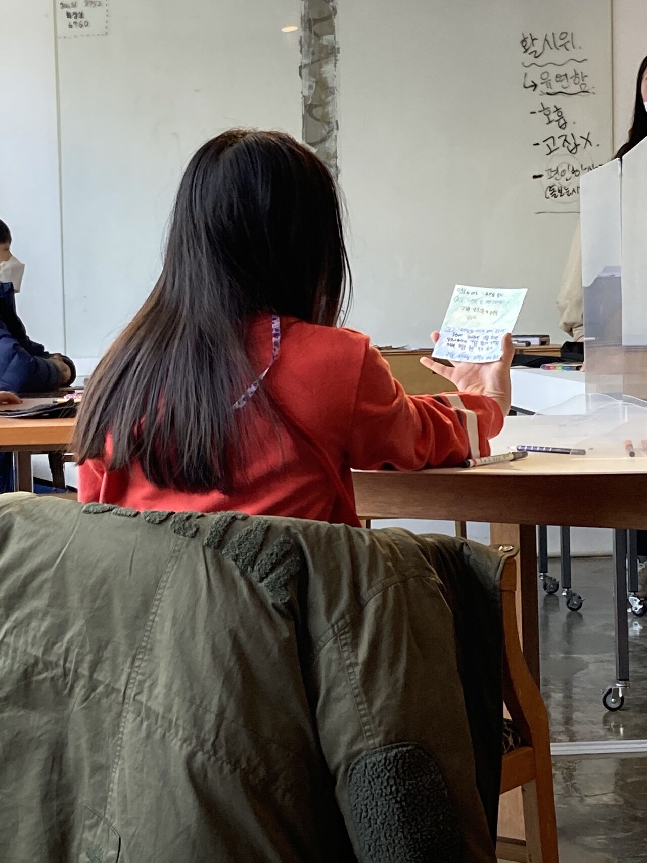 이번 시간은 그동안 배웠던 사자소학을 복습해보는 시간입니다. 지난 시간의 구용을 포함해 우리의 몸을 살펴보았던 첫 번째 시간과 두 번째 시간에 했던 한문을 찾아보았습니다. 지난 시간 내용을 다시 돌이켜보려니 우왕좌왕 찾지 못해 서로 알려달라고 하는 친구들의 모습닙니다. ㅋㅋㅋ