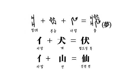 4. 사람 인(亻)에 내가 만든 기호를 결합한다.