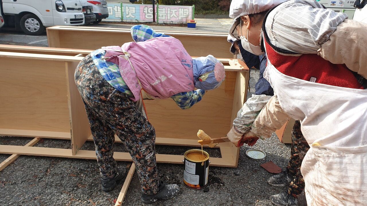 언젠가 전시장에 놓일 아주 많은 양의 가구를 칠 할 일이 있었는데, 기존에 섭외를 했던 페인트 ‘오야’ 박 반장님과 이야기 되었던 것보다 일을 하는 과정에서 칠해야 할 가구의 양이 늘어났다. 다음 일정으로 넘어가야 하는 박 반장님은 함께 일을 하러온 김경배 사장님에게 뒷일을 주고, “아줌마가 잘 마무리 해주실 거”라며 현장을 떠났다. 혼자서 할 일이 아닌데 급하게 사람을 섭외 할 수 없어 이틀에 걸쳐 내가 김 사장님과 붓을 쥐고 일을 했다. 그 과정에서 우리는 친해졌다. 둘째 날 저녁 아무래도 예정된 시간에 일이 끝날 기미가 보이지 않자 김 사장님은 팔을 걷어붙이고 밤늦게까지 일을 도왔다. 밤늦게 현장에 불을 밝히는 것은 휴일이 없고 야간작업만 허용되는, 백화점 같은 특수한 경우가 아니고서 좀처럼 보기 힘든 풍경이다. “실장, 이거 못 끝내면 어쩔 거야. 돈도 못 벌고 사람도 잃는 거지. 내가 그냥 가면 실장 그러라고 두는 거지” 김 사장님은 나와 클라이언트 관계의 신뢰를 걱정했고, 그것이 본인의 신뢰와도 관련되었다는 사실을 몸소 보여주었다. 대부분의 남성 오야들이 술 먹을 때 입버릇처럼 말하는 그 신뢰를, 난 김 사장님과 그날 저녁 보낸 시간을 통해 강하게 느꼈다.