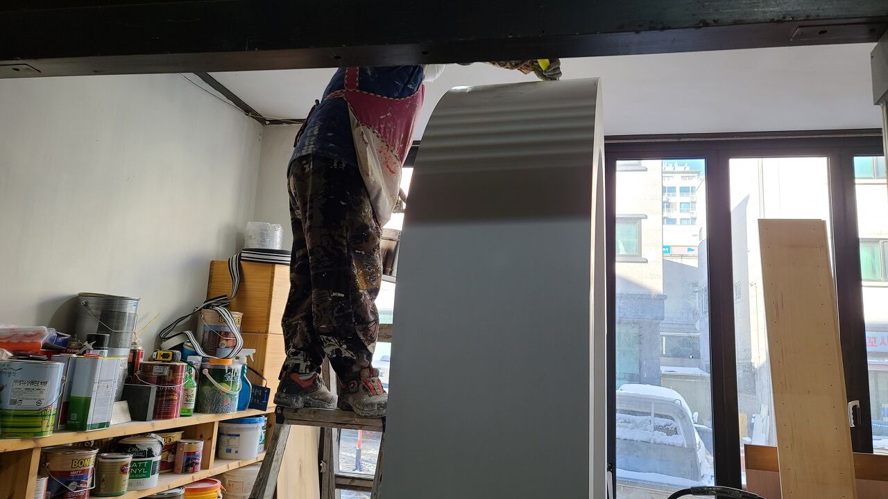 김경배 사장님은 내가 일을 시작한 초기에 만난 여성 페인트 공이다. 김 사장님은 당신 막내아들이 나와 동갑이라며 처음 만난 날부터 나를 아주 예뻐해 주셨다. 일을 시작한지는 40년이 넘었고, 처음엔 페인트 가게를 하는 남편을 따라 일을 다니다가 남편은 몸이 좋지 않아 더 이상 일을 못하고, 혼자서 일을 하러 다니신다. 40년이면, 일을 잘하냐 못하냐 같은 질문은 사실 쓸데가 없다. 사다리와 우마는 ‘남자의 일’이라며 피하시지만, 높은 곳에 올라갈 필요가 있을 때는 아무 말 없이 한 손엔 붓을, 다른 손엔 페인트 깡통을 들고 능숙하게 사다리에 올라 칠을 하는 그를 쉽게 볼 수 있다.
