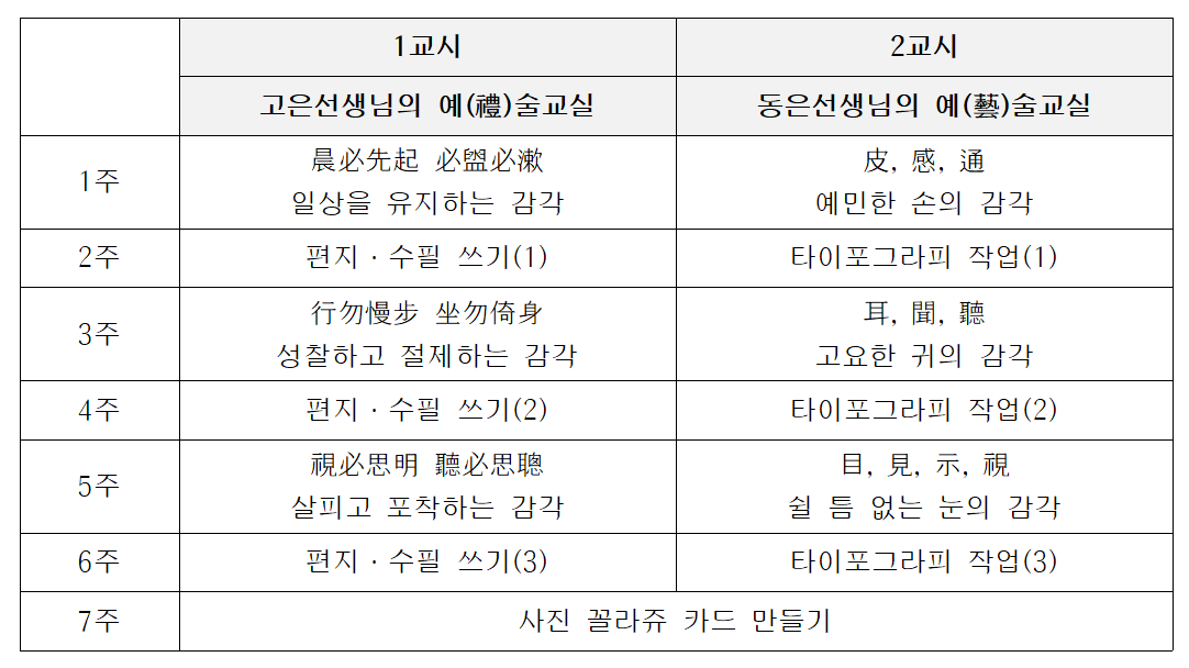 2교시에는 한자를 통해 의미를 깊게 물어본 적 없었던 감각에 대한 감수성을 키우고,