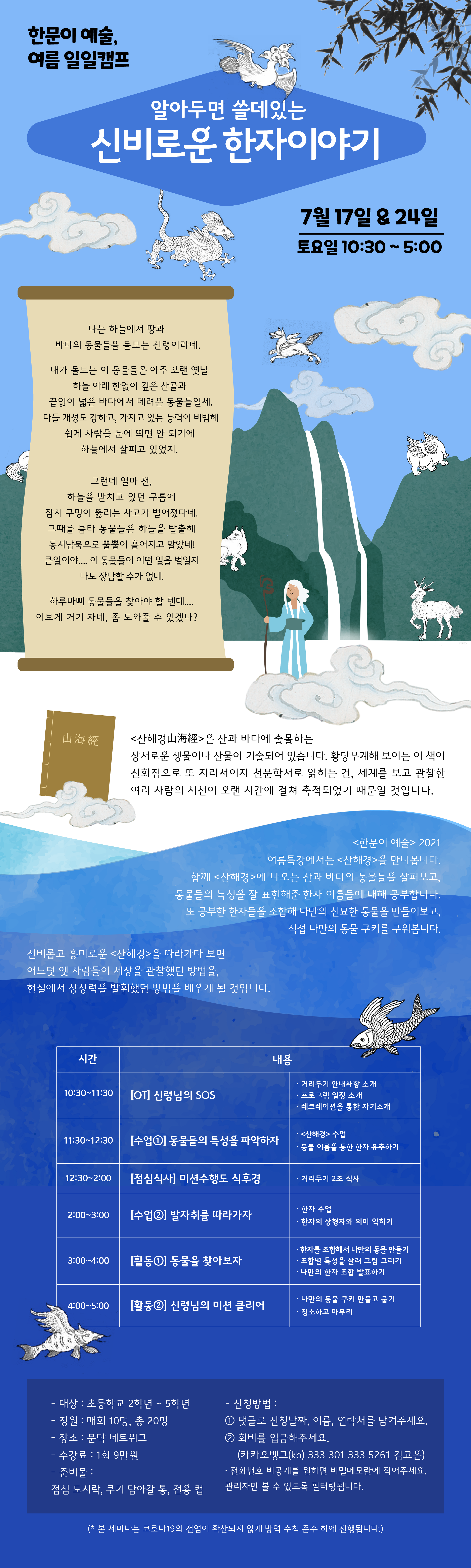 한문이 예술 여름캠프 <알아두면 쓸데있는 신비로운 한자이야기> (7월 일일캠프)