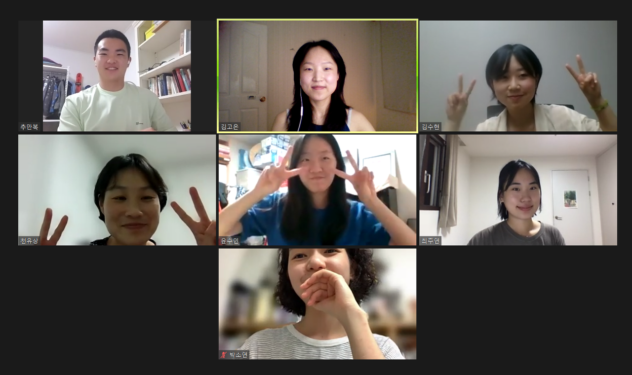 - 추만복: 저는 오늘 이야기를 나누면서 제가 생각해보지 못한 질문을 가져볼 수 있어서 좋았고, 혼자 고민할 때보다 다른 분들 말씀을 들으면서 생각이 많이 정리되는 것 같아서 재밌었습니다. 줌으로 하다 보니 뭔가 주제에서 벗어난 가벼운 질문들을 하기가 쉽지 않아서 아쉽기도 합니다. 다 같이 둘러앉아서 얼굴 보면서 얘기하고 싶었습니다.